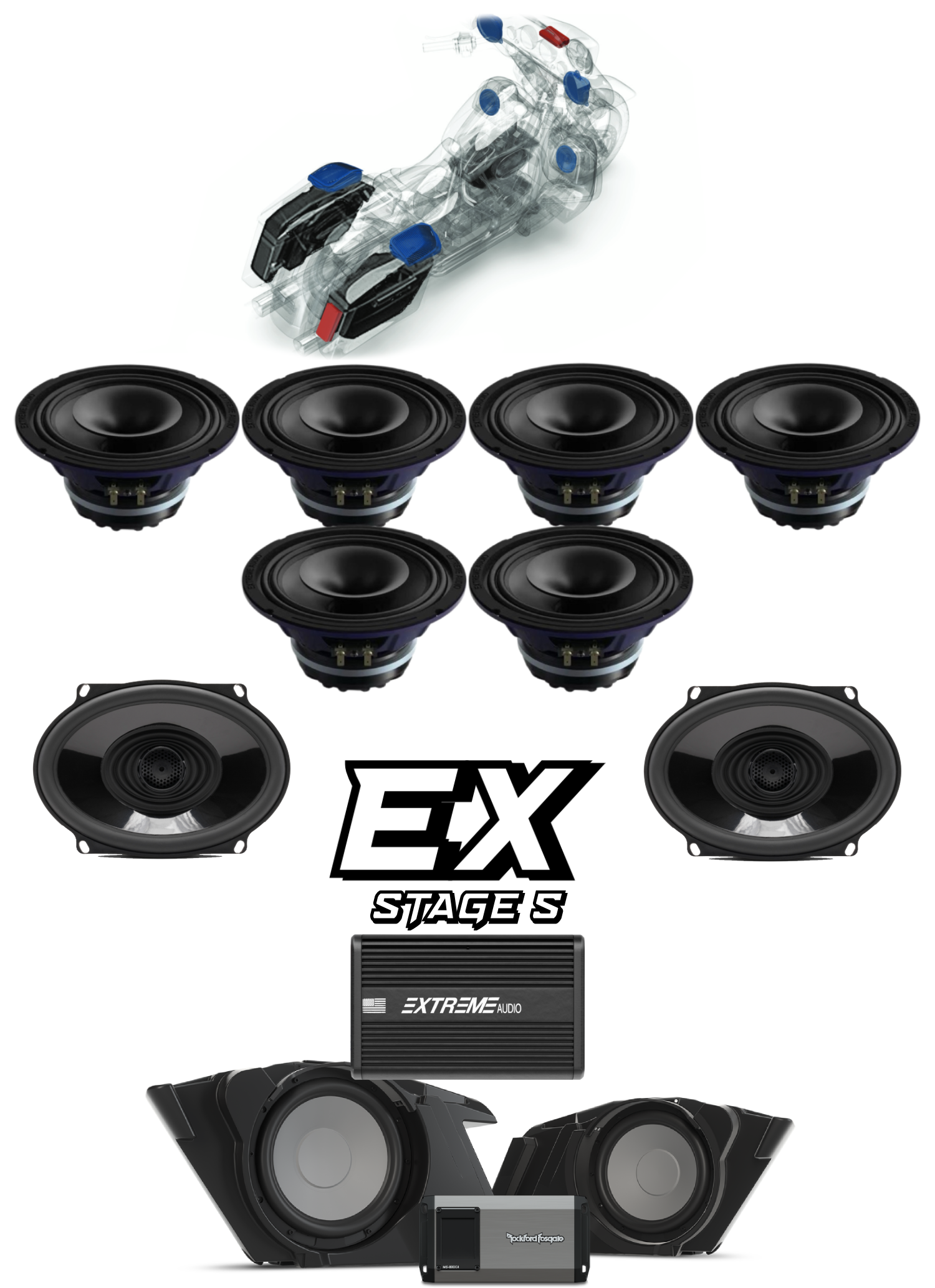 Every kit is engineered as a complete system. Speakers, amplifier, wiring, and mounting are all selected to work together seamlessly, so the install is straightforward, and what you hear on the road is exactly what the system was built to deliver.
